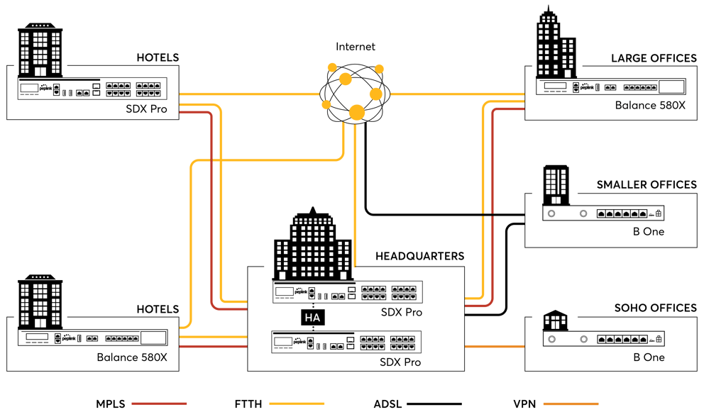 Sharing on social media, streaming movies or accessing work files through the cloud are some of the things taken for granted by hotel guests, and providing reliable Internet at the hotel can help keep guests coming back. Whether your premise is at the heart of a busy city or away from civilization, Peplink SD-WAN has the right tools to help hotels and resorts deliver great network speed while keeping costs low.